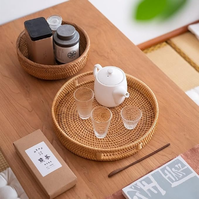 Designed for both aesthetics and durability, this lightweight yet sturdy wicker tray is ideal for home decor, organization, and entertaining guests. Whether used as a centerpiece, a decorative storage solution, or a serving tray for drinks and pastries, its handwoven texture and warm tones create a cozy and inviting atmosphere.